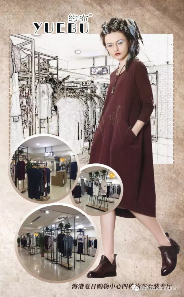 约布服饰设计元素灵感来源于大自然质朴、舒适的特点;采用时尚的自然元素,兼容时尚年轻的文化与人文情怀。我们感受富有趣味性一面,突破了因修饰而华丽,从而演绎约布的简约 、自然、 时尚经典的风格;核心客户群体面向25-55岁的都市时尚突破自我的女性。