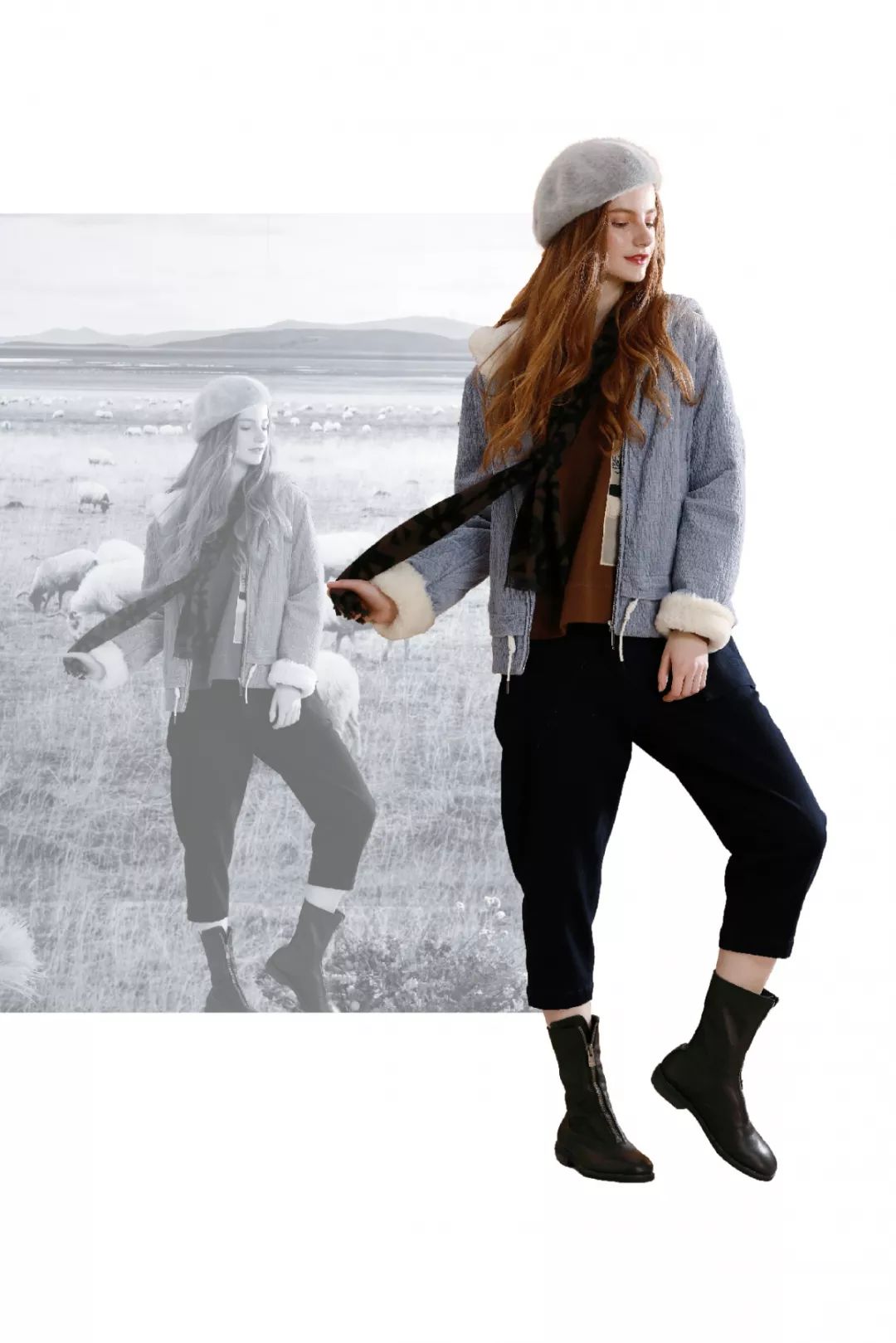羊羔毛贴布绣花工艺+毛线绣提花等工艺