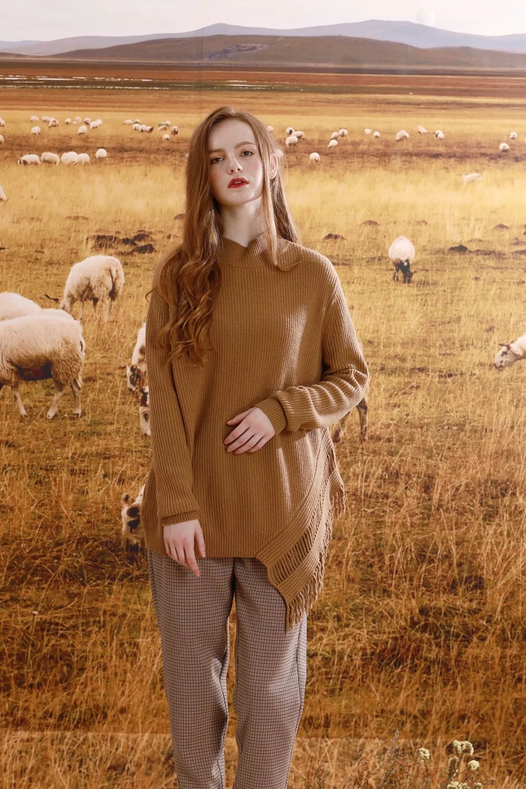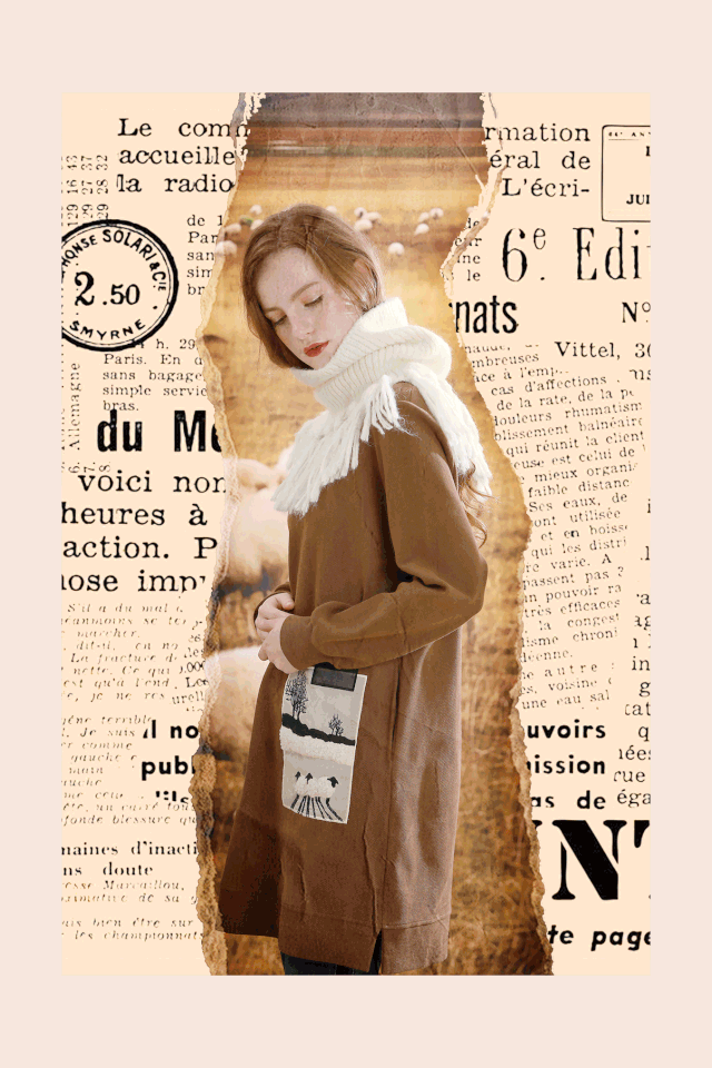 宽松的卡其色毛衣给人一种安静柔和的感觉