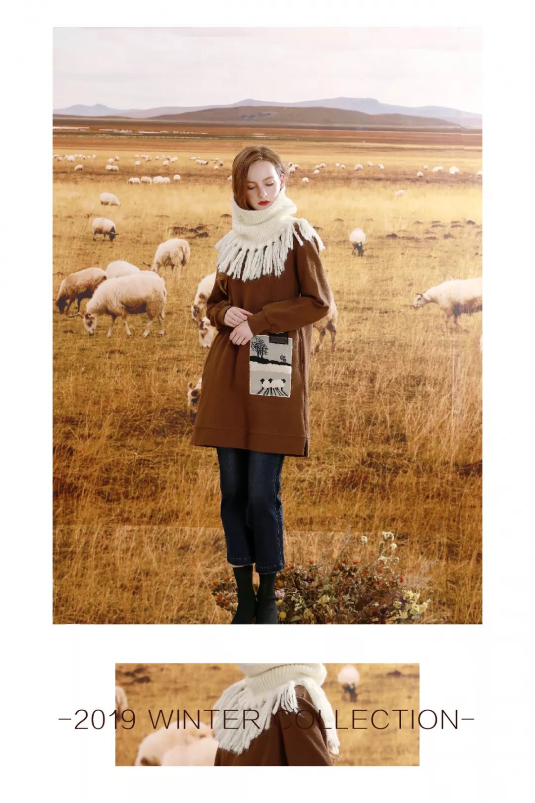 将羊的形象栩栩如生呈现在的机理饱满针织面料上