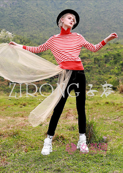 黑色单品和鲜艳颜色直接的撞色,即使是普通基础的黑色单品,也能搭配出非常养眼的视觉效果。黑色 裤,在小个子女生身上一样显瘦显高,搭配鲜艳明快的玫红色条纹上衣,两种颜色碰撞出可爱俏皮的感觉。