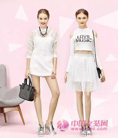 轻松随意的风格中,加入了有浪漫气息的心型花,甜美而有活力,新型的烫银条纹和网格面料结合,带来非凡的摩登体验。