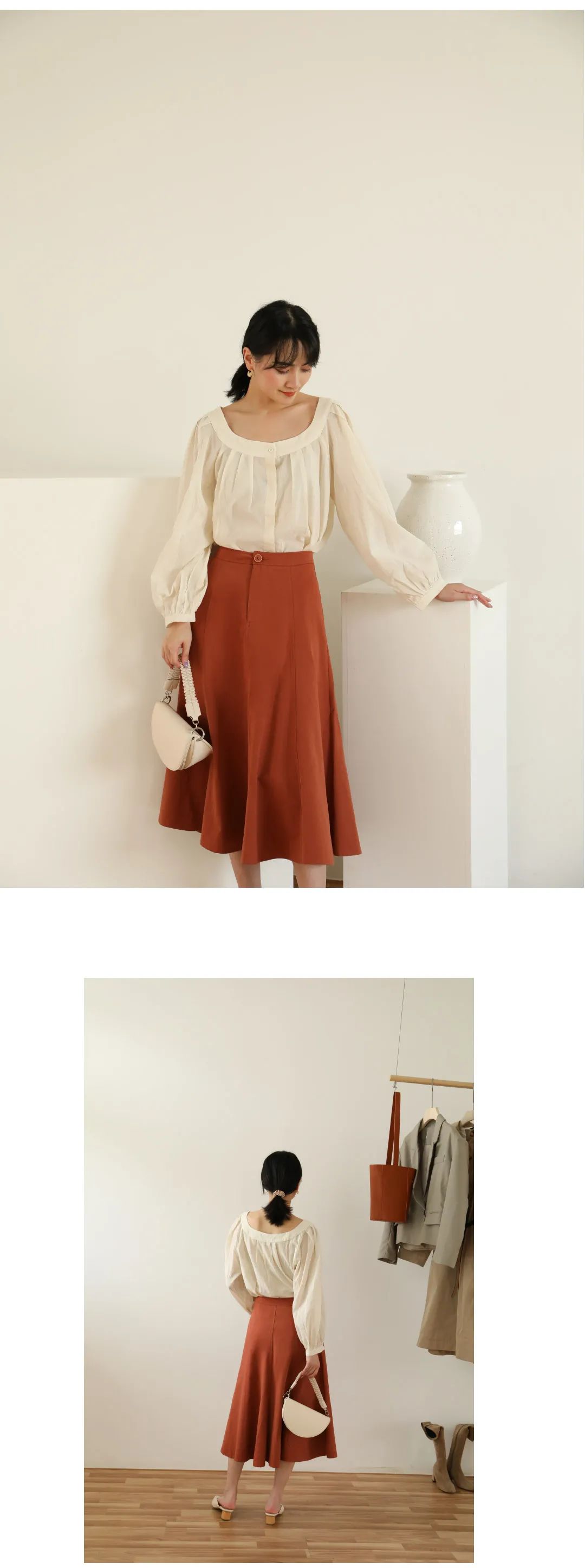 肌理感米色上衣搭配层次感半裙