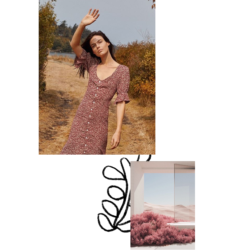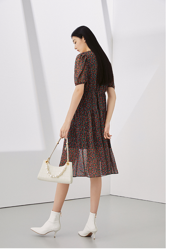 花的氛围,花的芬芳,在不同的光线下,总是会呈现不一的色泽,正如法式美人,爱穿的碎花好像差不多,但因为每个人穿搭呈现的独特自信,才将它演绎出不同风格。