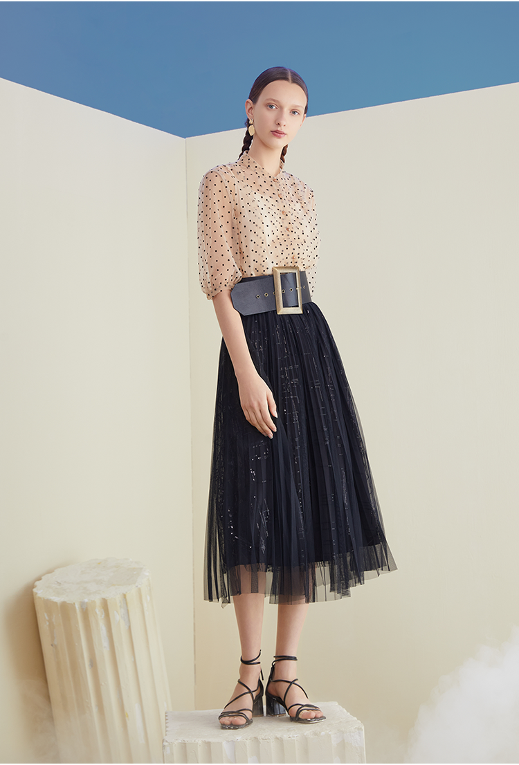 搭配黑色半裙 浪漫而自在