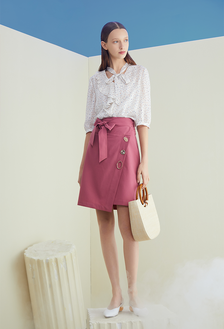 搭配提气色的粉紫色半裙