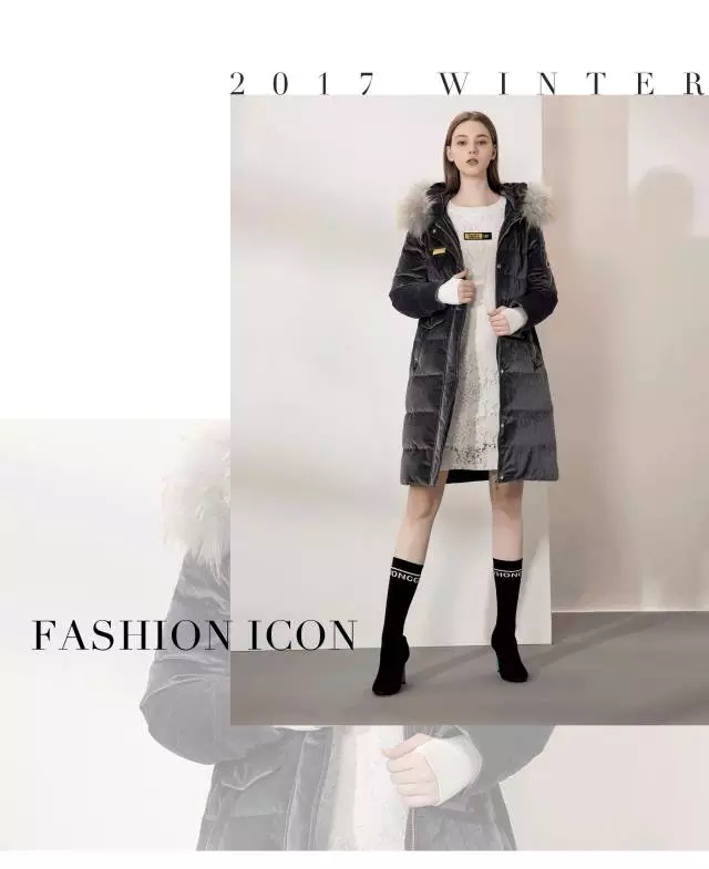 银灰色的丝绒面料羽绒服/自带高贵DNA/