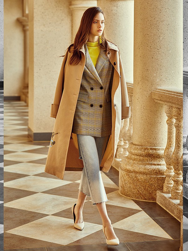 西装外套也可以让你穿出女王蜂,别看西装外套是西装的单品,但是作为内搭其实也可以起到非常好的作用,让你穿上就充满干练气质。在格子西装外套作为内搭外面在穿上一件长款的风衣,这样的搭配具有知性减龄感,并且更加富含成熟的气息,穿上身也非常的温暖。