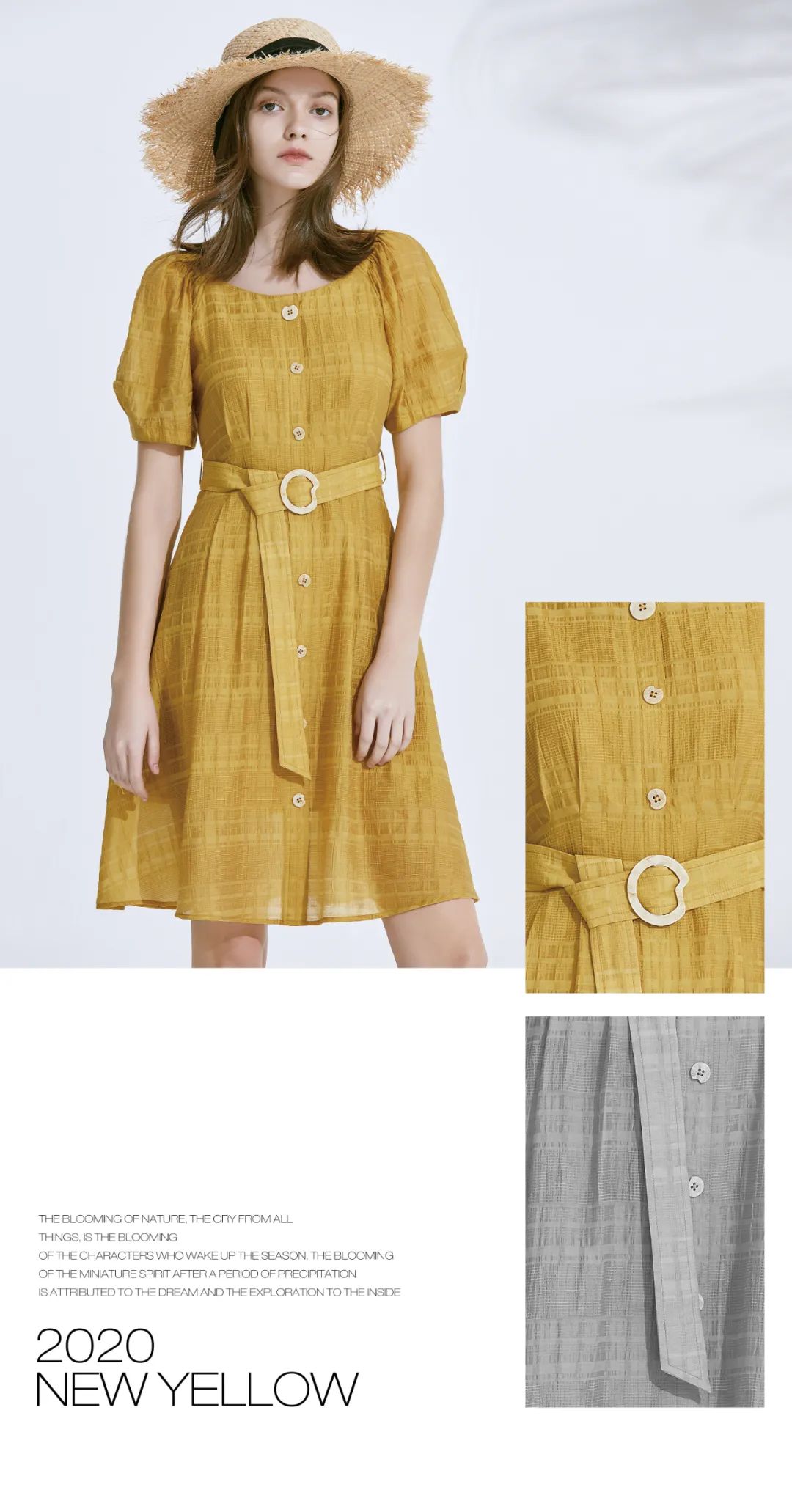 柔嫩明媚的黄非常适合夏天,相对这条裙子有比较大的裙摆,甩动起来时很好看。材料利用条纹的方向变换出纹理方向,腰部有比较显瘦的设计,时尚妩媚又不失性感,遮住小赘肉.