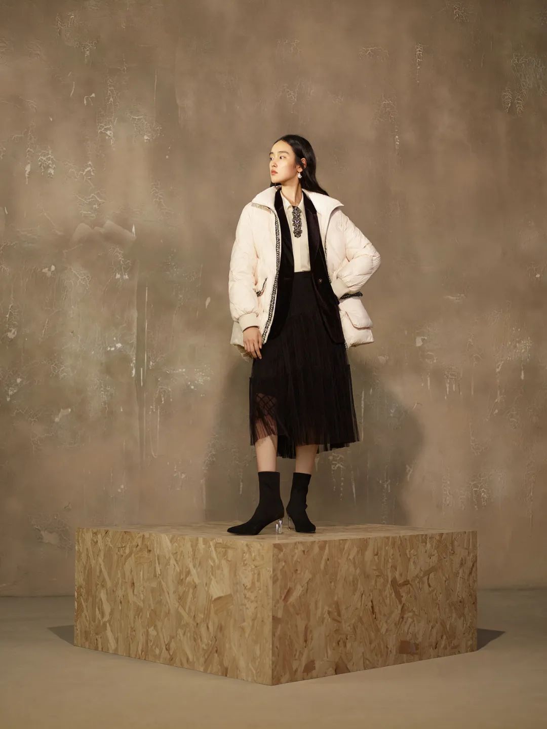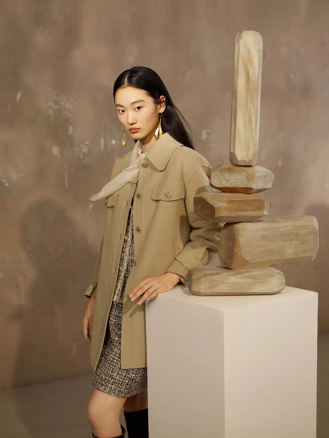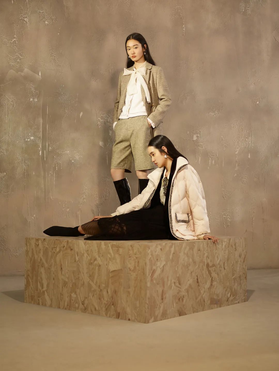 以时尚语言解读艺术的律动,经典廓形中,融合粗花呢、编织印花等元素,复古与现代的碰撞,带来适变共生的自我重塑,打造别具一格的意式优雅。