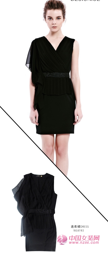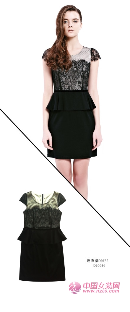 精致轻熟风。这款黑色拼接连衣裙极富剪裁感,上半身蕾丝的分量不多不少,恰到好处,腰部微微散开的褶皱将腰线修饰得无懈可击,韵味十足的美裙。