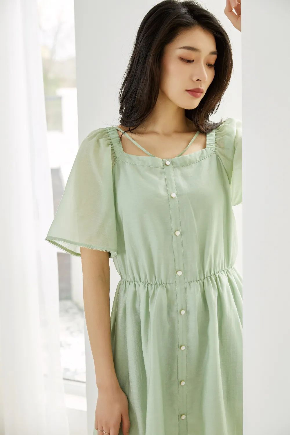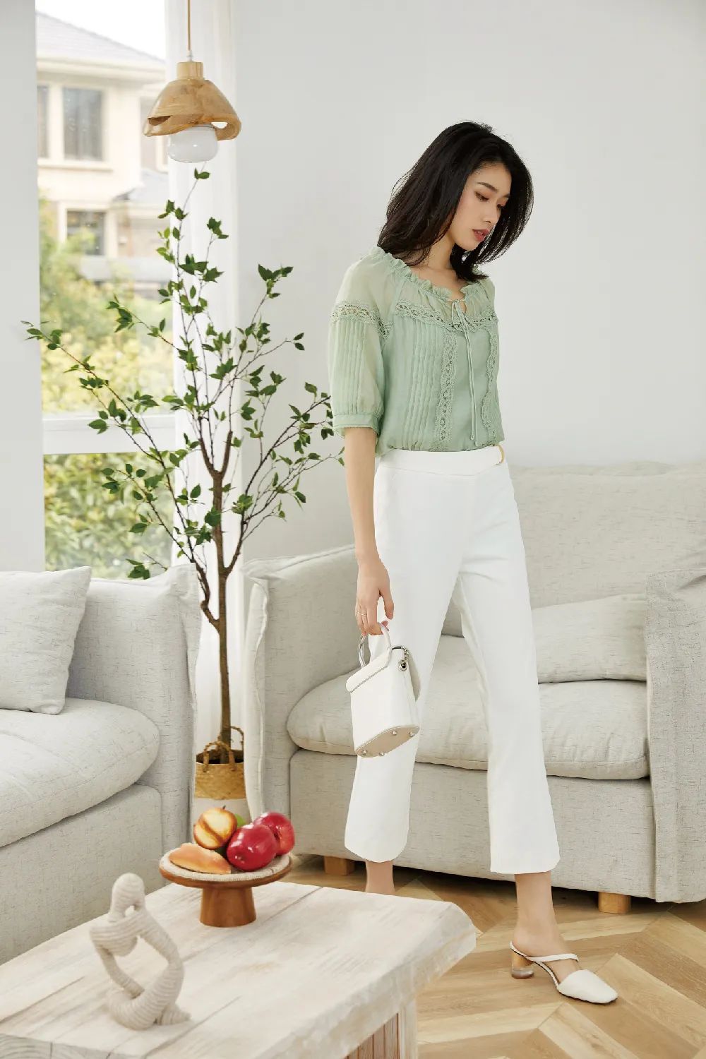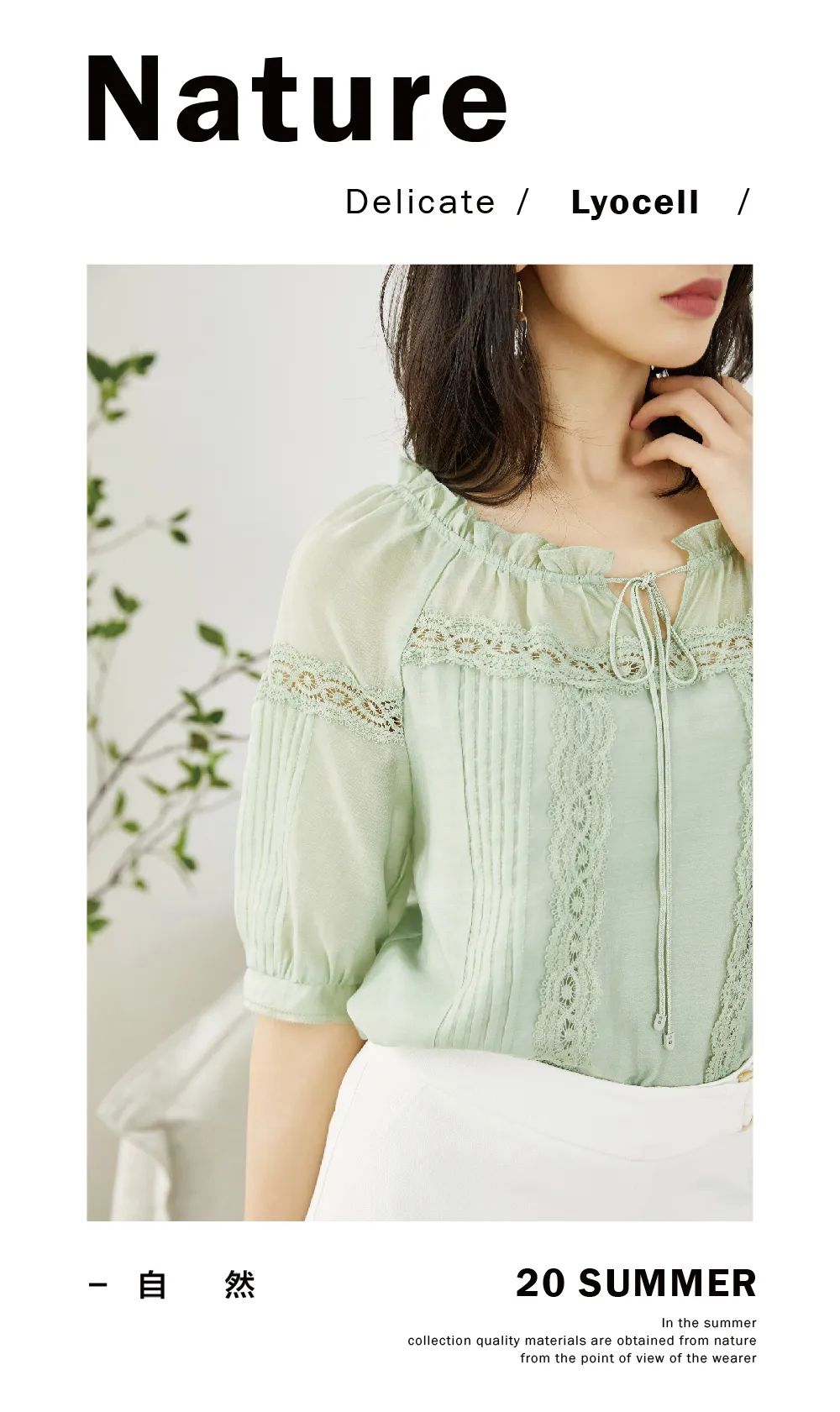 莱赛尔纤维是一种被誉为“绿色纤维”的材质,它以植物为原料,生产过程不涉及化学反应。在节能和环保、可持续为主题当下让时尚更加环保。用这一种材质制成的上衣和连衣裙,光泽自然,手感滑润,亲肤自然。轻薄的质地保持裙身舒适度同时更加轻盈。