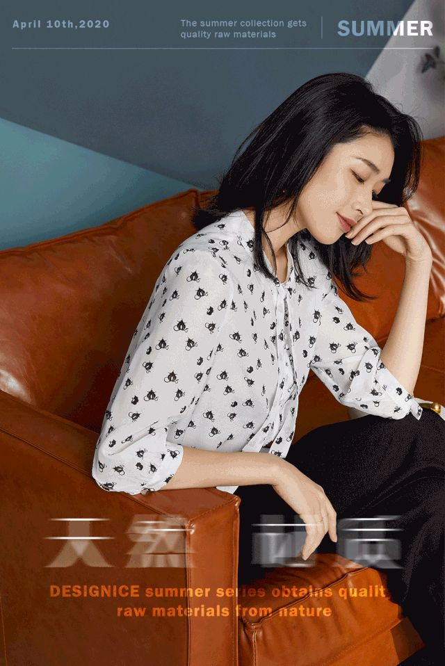 DESIGNICE夏季新品选用天然材质桑蚕丝、醋酸纤维和莱赛尔纤维,通过先进“黑科技”,塑造全新质感,呵护肌肤。