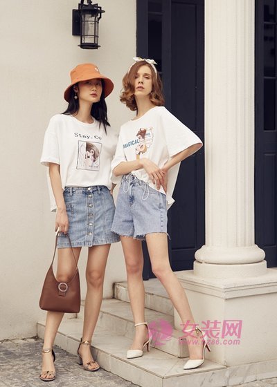即使是懒癌仙女以及搭配小白,也躲不过两件单品相配的穿搭。只需要最基础的T恤和裤装就足矣,选择蓝白搭配,省事还不易出错。