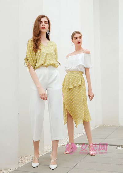黄色的相对还是比较考验人的,但皮肤白皙的人穿上还是很显白的。黄色上衣与白色裤子的组合搭配,整个冷色调的造型组合,在夏天倒是清爽十足,又很大方简洁。