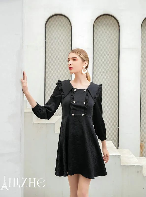 今年火到爆炸的黑色方领连衣裙,更是必buy单品。方领衬托的会肩背更薄,荷叶边设计又自带一丝女性柔美气质,黑色还巨显瘦显气质!