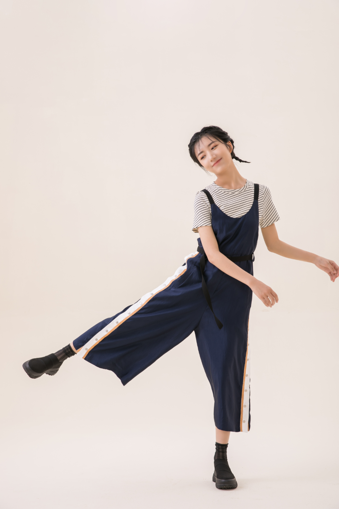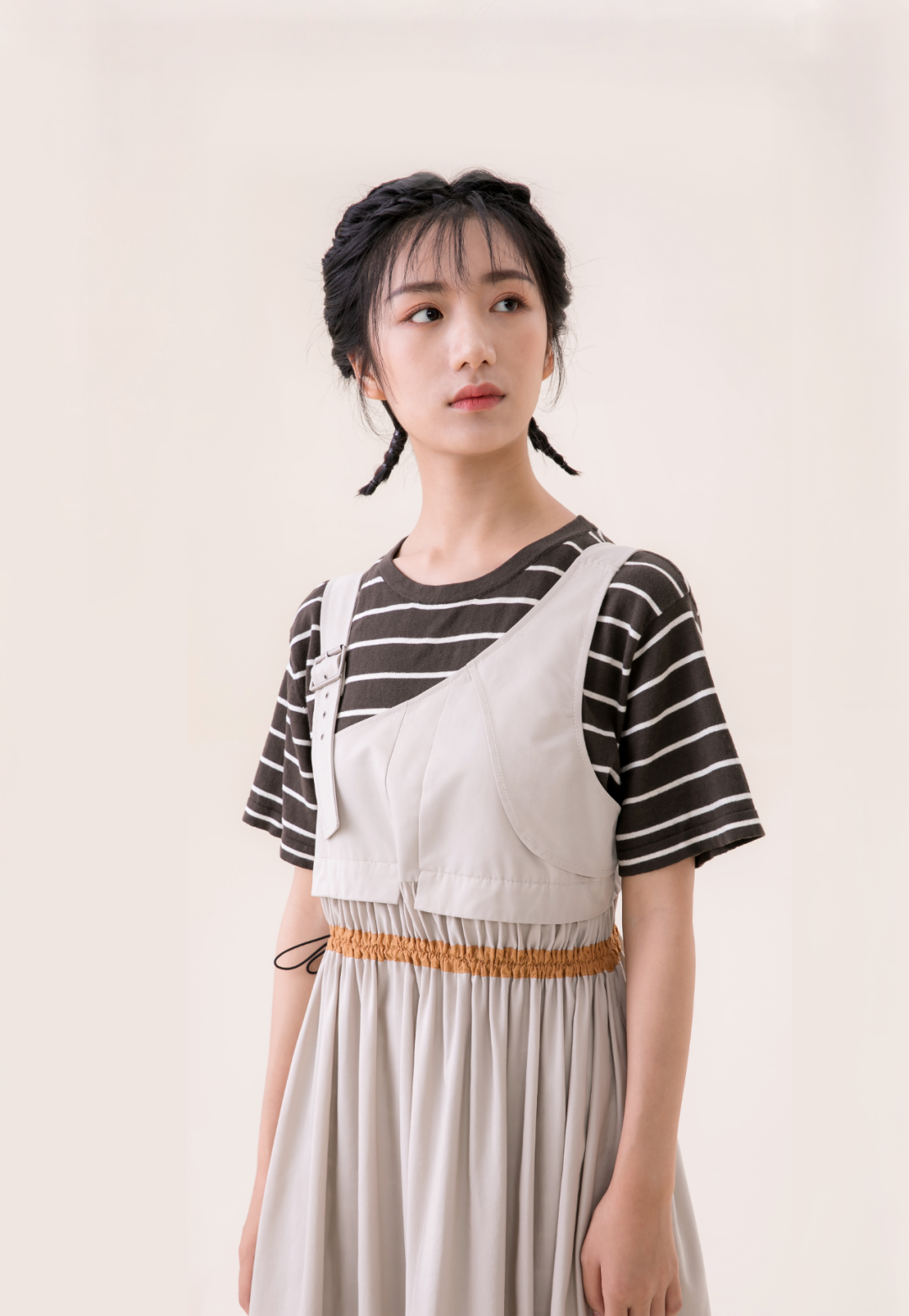 以多种经典背带重构秋季幻想,采用多种面料的深浅拼撞