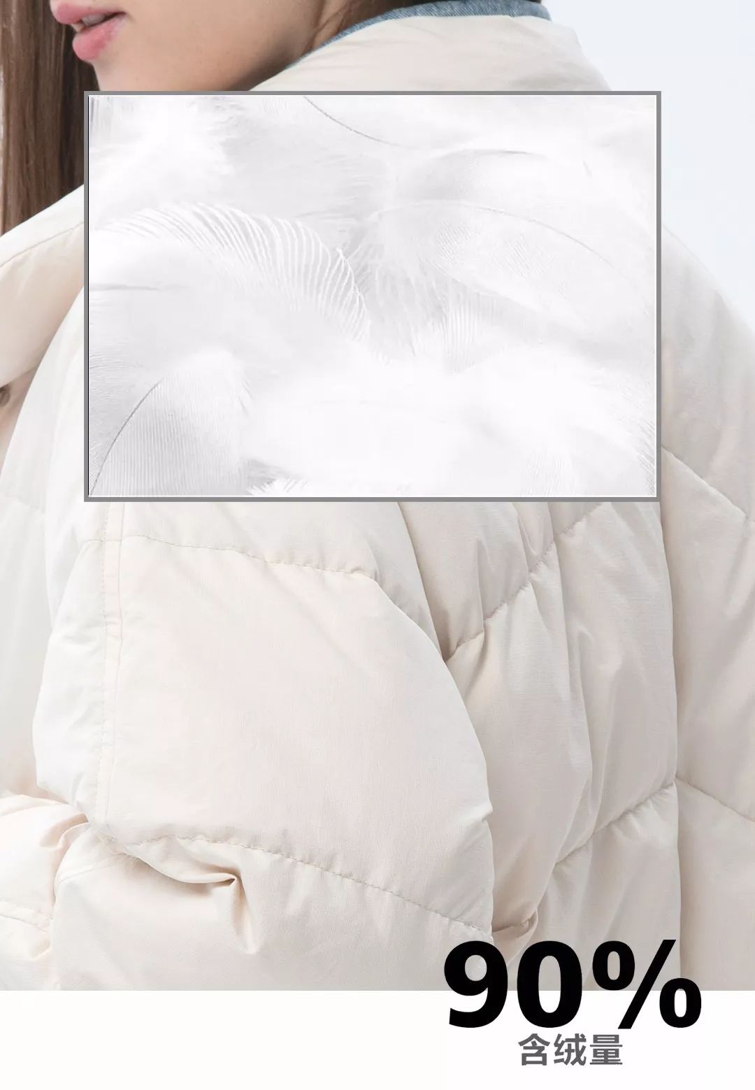 Jimisaiou2019新款羽绒服精选90%绒,大绒朵充盈,丰厚蓬松;高支高密防钻绒面料,绗缝工艺精工细作;更轻量化的处理,拥有良好的通气性和蓄热性。