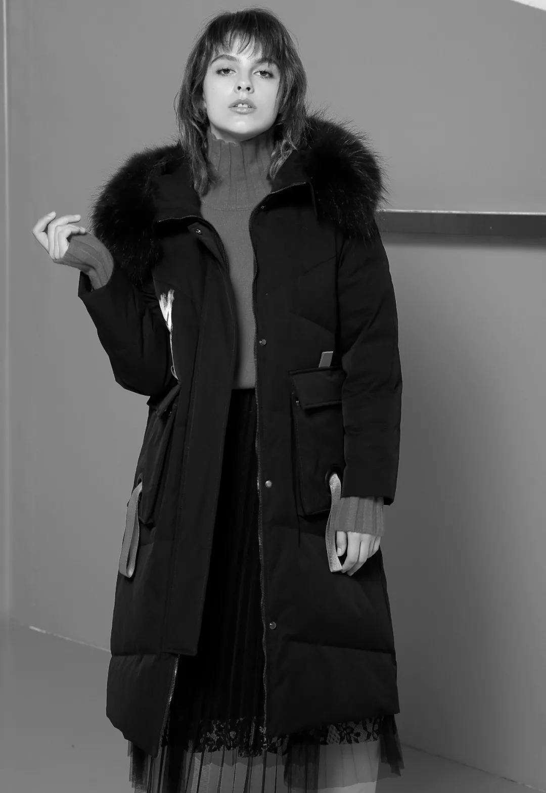 中长款保暖系数高,最适合高瘦型妹纸穿搭