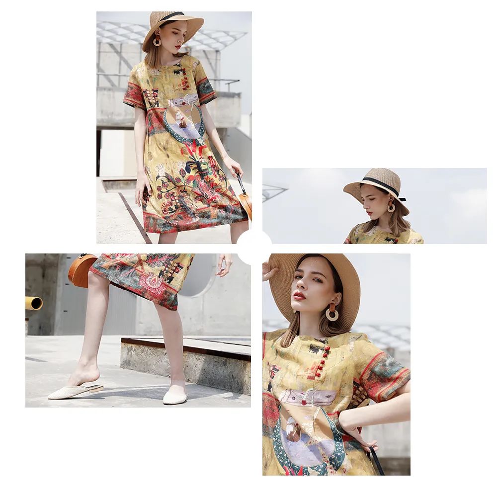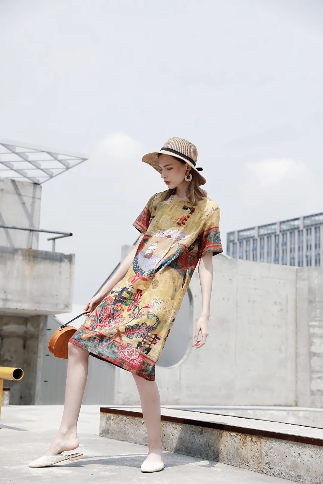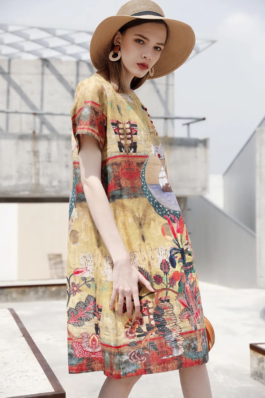 印花连衣裙,