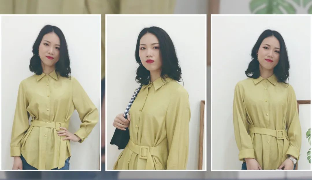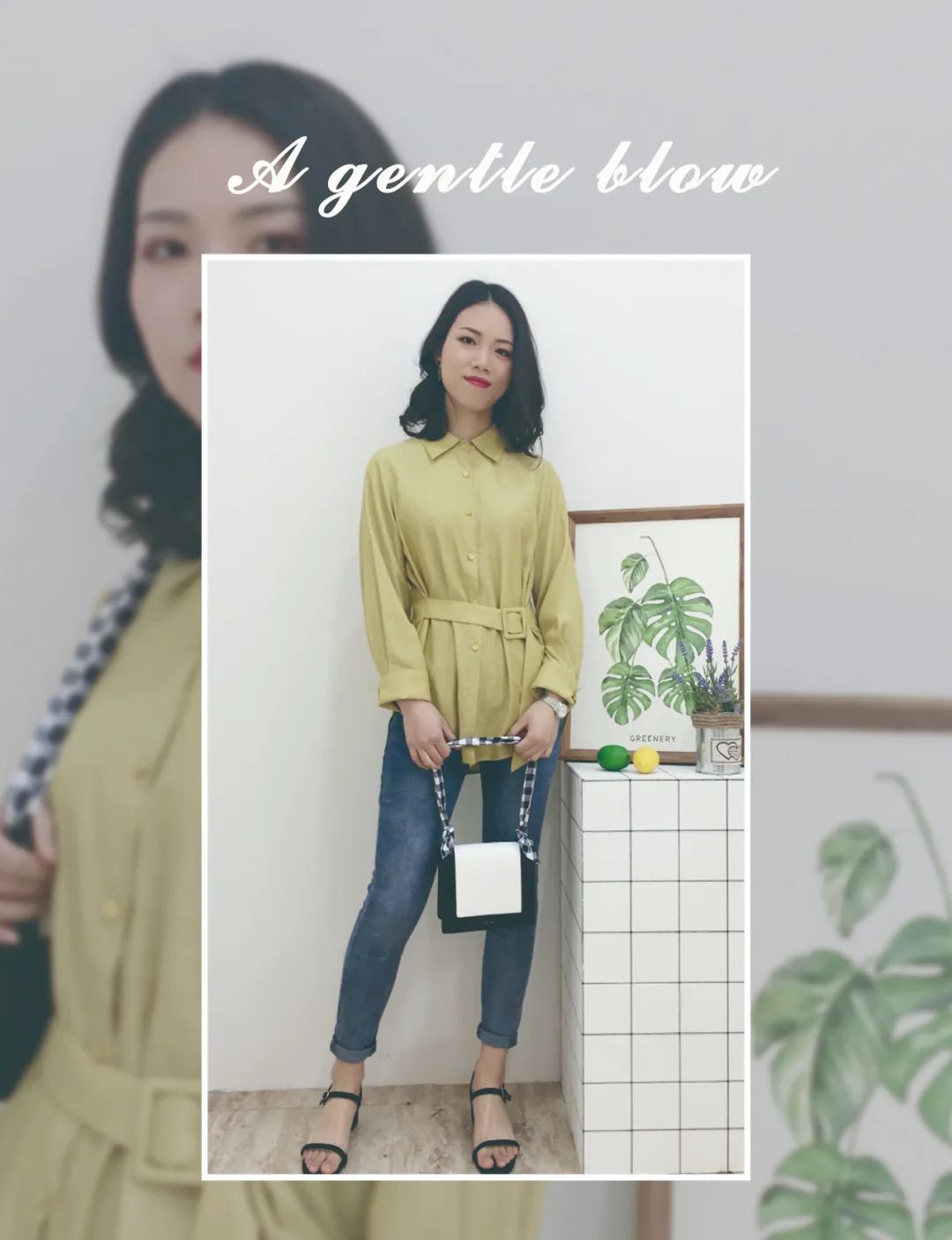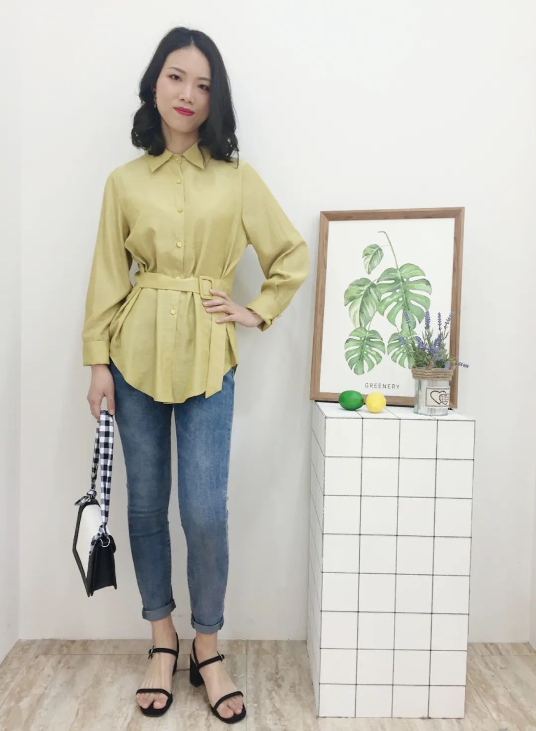 束腰衬衫+牛仔裤不愧是属于春天的颜色,