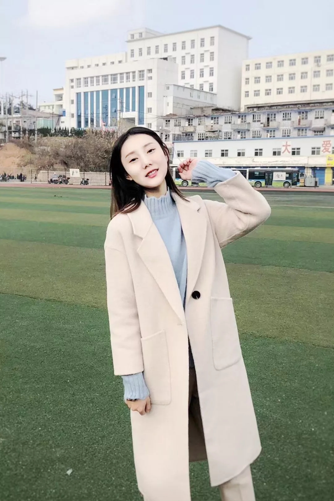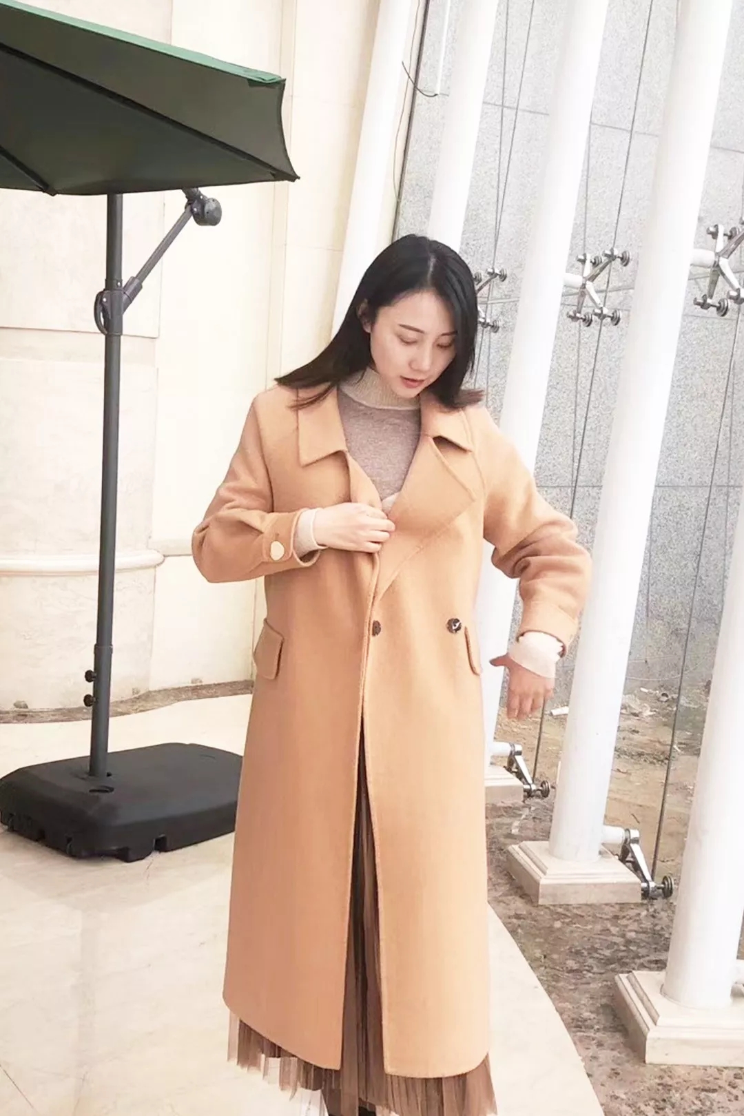 中长款米色大衣