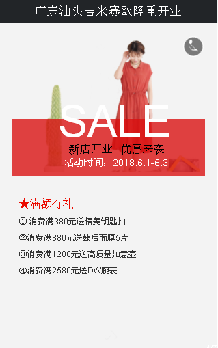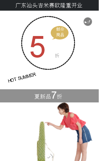 还在烦恼今年夏天穿什么吗?赶快来吉米赛欧女装店铺选购吧,夏季新品款式多多,优惠多多,总有一款适合你!***祝吉米赛欧女装广东汕头店开业大吉,生意兴隆,服装大卖!