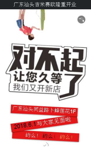 随着开店热潮的刮起,新店一个接着一个盛大开业!这次吉米赛欧女装又要开新店了,位于广东汕头同益路卜蜂莲花1楼的新店将于6月1日盛大开业!感兴趣的朋友们欢迎到店选购哦!
