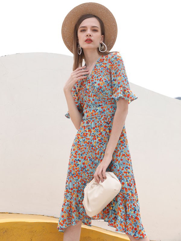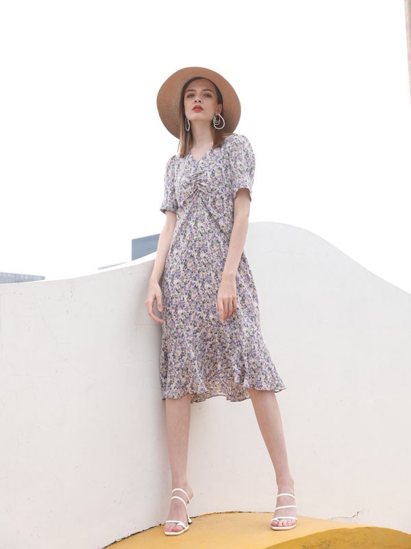 时髦是出街都会遵循的规律,气质美衣的款式都开始“微整”,这款碎花连衣裙的设计很修身,V领的设计将自己的性感展现出来,腰间收腰的设计轻松将自己的腰身轻松束出来,飘逸的裙摆带来夏日微甜的气息,搭配一双高跟鞋,将自己的气质轻松展现出来,这样的碎花连衣裙是不是很好看。