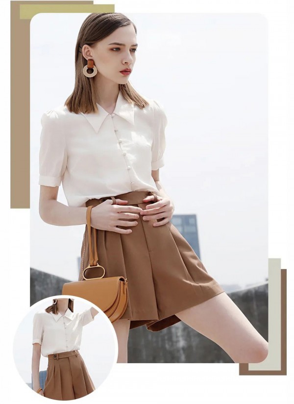 翻领设计跳出了沉闷,赋予了灵动的少女感,袖口的设计既修饰手臂线条又日常特别不夸张,细腻亲肤的面料,就算单穿也很舒服,让皮肤在夏天也能柔软自由呼吸~