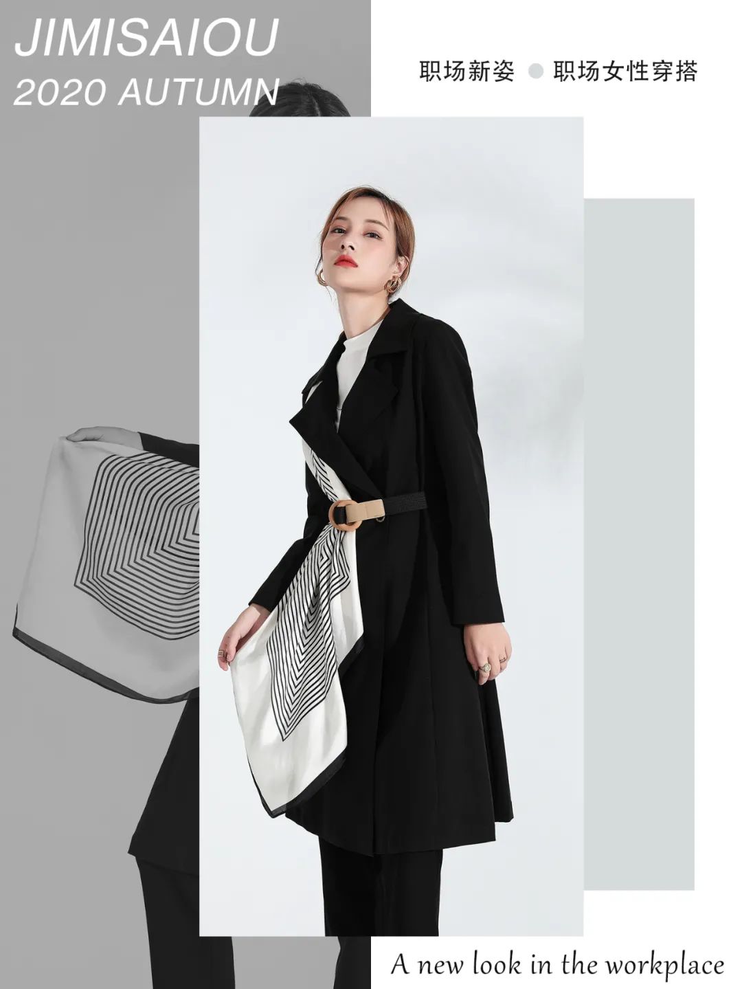 部分条纹元素,打造都市职场气息
