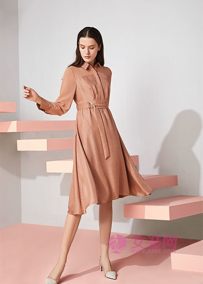 衬衫作为职场最经典的基础单品,可以搭配出百变风格。浅棕色衬衫裙,清新自然。腰带的设计,显高显瘦,颜色很百搭,整体气质沉静的稳重感。
