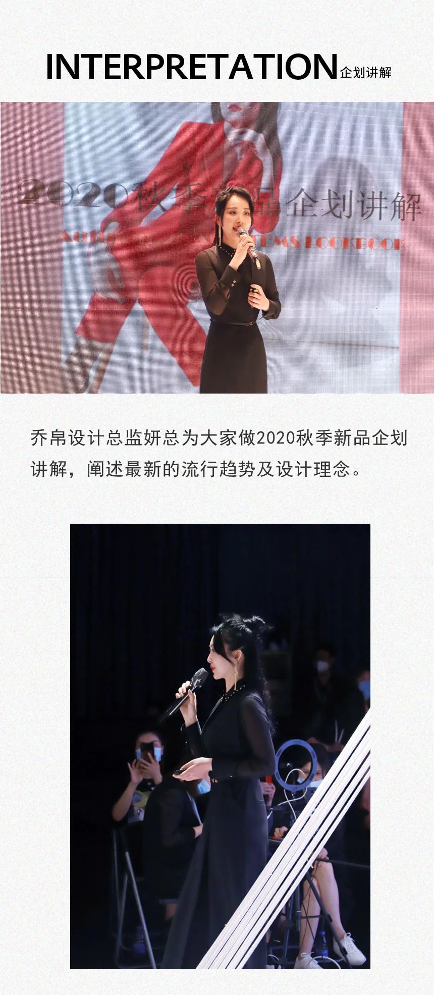 360度全景推演订货环节,全面展示了JAOBOO/乔帛2020秋季新品。本季的新品时尚新颖,采用了更多新型流行面料,浪漫的蕾丝所散发出的曼妙柔美,也给连衣裙、衬衫等赋予了更多精致优雅女人味……
