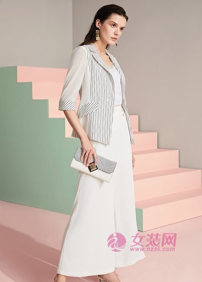 在夏天一件无袖上衣还是很清爽的。这款上衣穿在身上却可以更好的将女性的温柔气质展现出来,在上班时候穿也是非常好看的。上衣是修身款式,可以很好的修饰身材,让整个造型成熟中带着一丝性感的味道。这个时候下半身我们可以搭配一条西服裤,这样整体的造型会更加和谐。
