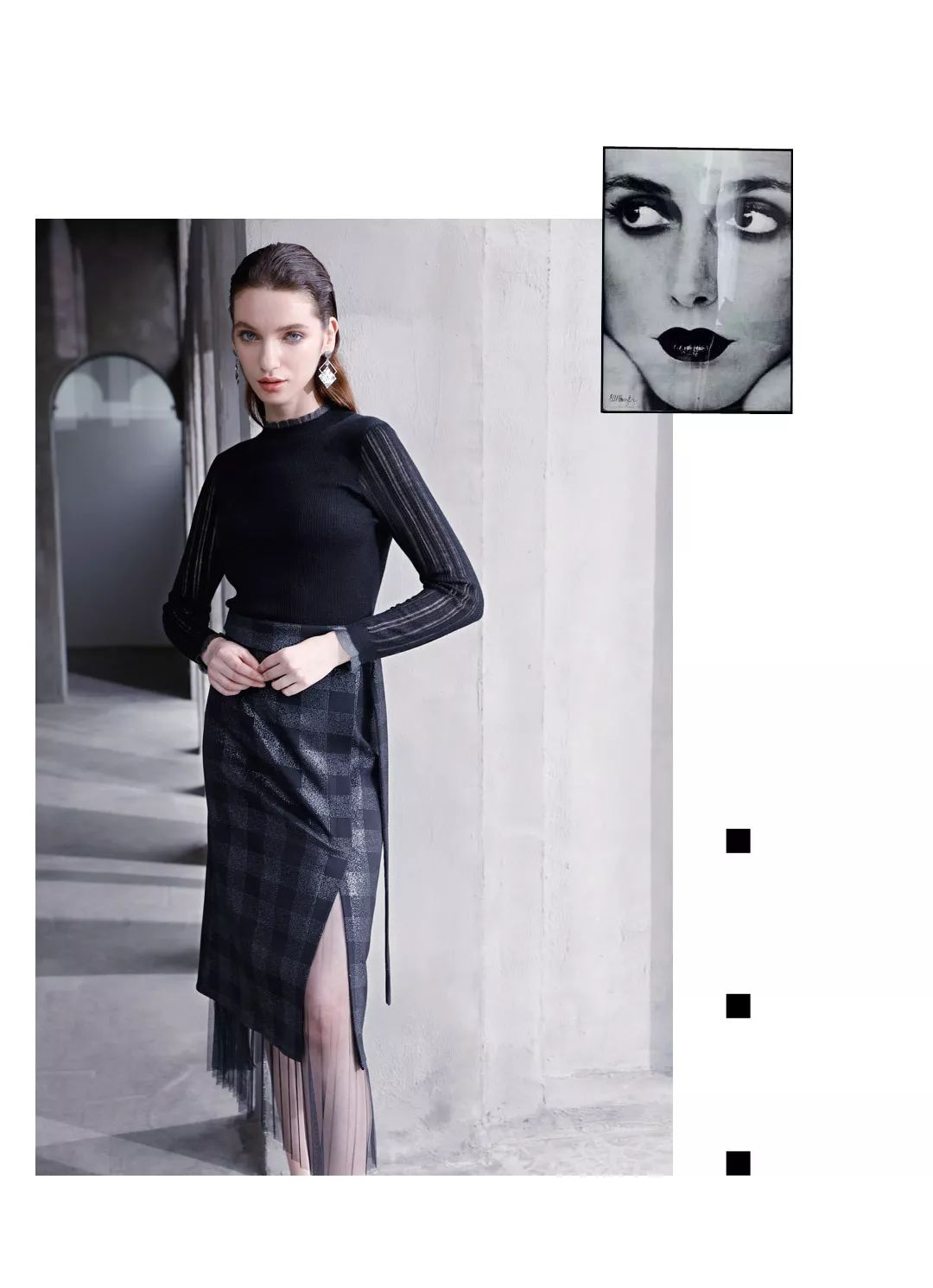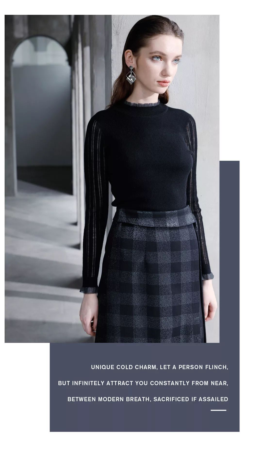 格纹半裙,下摆拼接网纱,