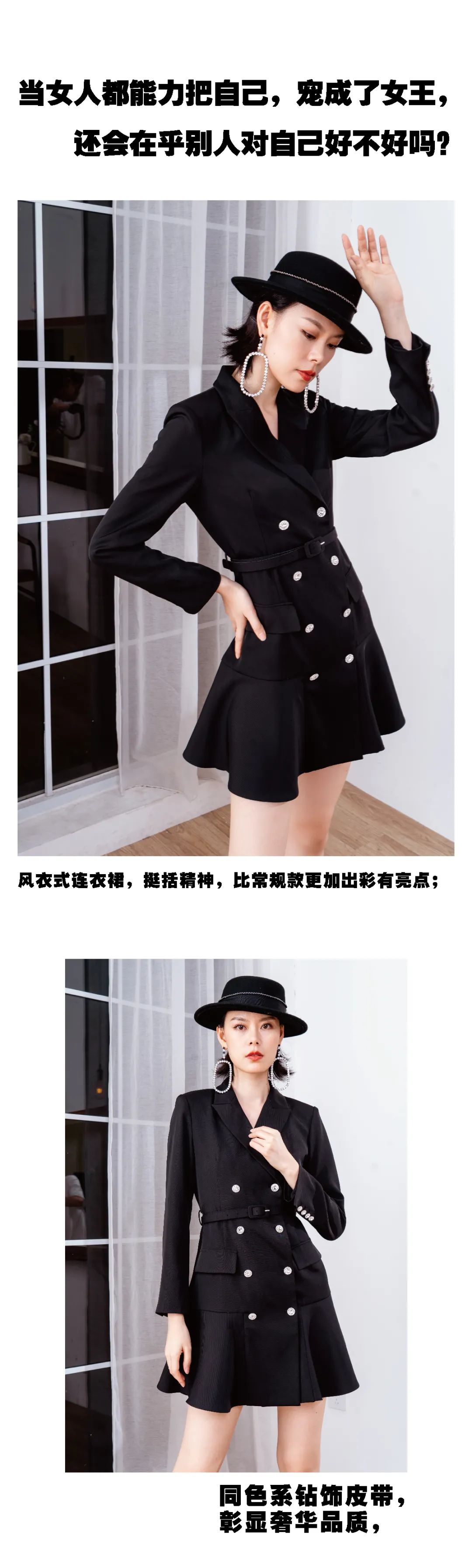 风衣式莲衣裙,挺括精神,