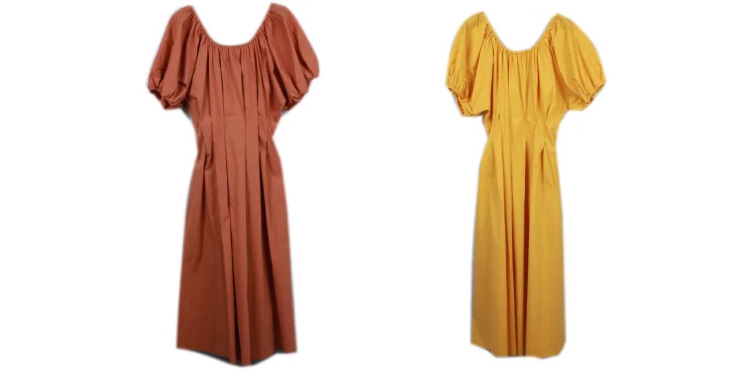 泡泡袖连衣裙款号:M202N1662橘橙 亮黄