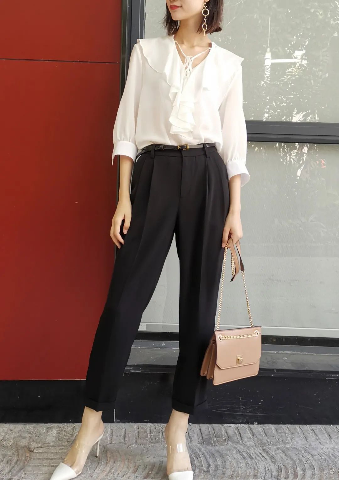 搭配这条修身直筒裤,简洁大气之余又不失优雅小女人的调性。