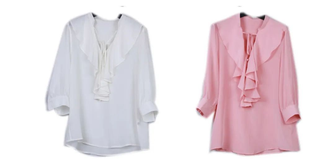 复古荷叶边,是今年春夏流行的元素,这种尖V领口,延长脖颈,很适合粗脖子星人~