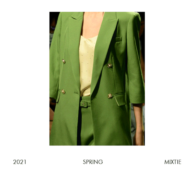 MIXTIE将当代都市女孩的精致、自信、浪漫、优雅等特质表现的淋漓尽致。也重新诠释极简职业装,为经典西装注入前卫实用主义感。为朝九晚五的职业装注入青春活力。