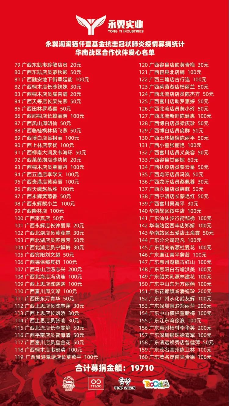 各位同仁同心协力,慷慨解囊,伸出援助之手