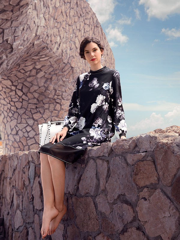 这款连衣裙看起来是不是很有气质,衣领的设计经典大方,修饰了脸型,肩膀处的设计很显气质将整个人的精神显现出来,宽松的版型穿在身上舒适简约,而且这样的版型穿在身上不会那么的显慵懒臃肿,裙摆的长度露出性感的小腿曲线,花朵的设计很是优美,搭配一双高跟鞋整体的造型优雅大气。