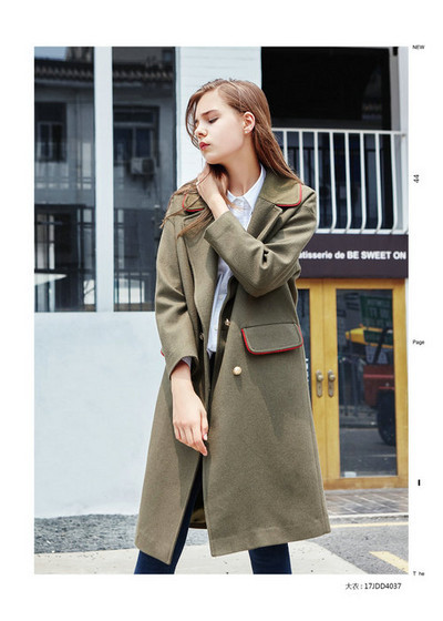 绿色呢子外套。经典时髦的墨绿色呢子大衣,显瘦效果真的超级棒哟,精选优质呢子面料舒适亲肤更保暖,时髦的大翻领设计很好的修饰脸型,款式利落显大气。