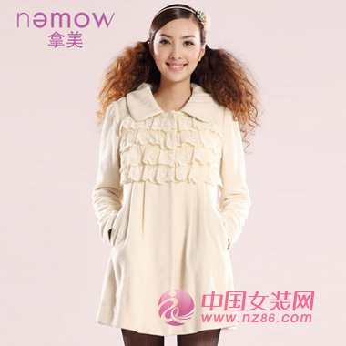 混羊毛面料柔和保暖,为冬日抵挡严寒,褶皱花朵领与层叠蕾丝相映成趣,交织出一幅轻柔唯美画面,褶皱腰线与A字型衣摆设计,将曼妙身材和娇美气质衬托的异常动人。