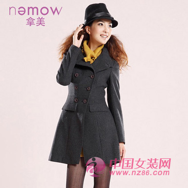 灰色带给人沉稳与知性,双排扣设计时尚大气,流线条裁剪出窈窕身材,高品质感毛呢带来温暖的同时彰显高档价值感。