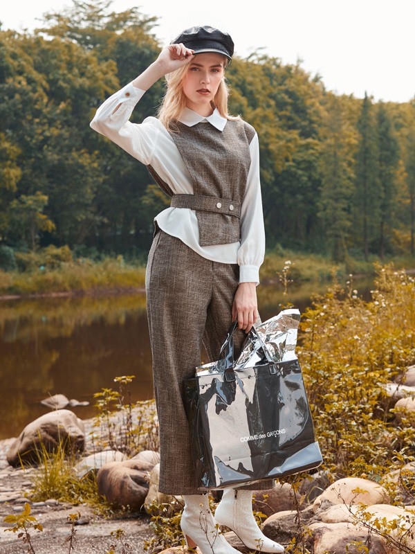 这款套装的搭配穿在身上不仅好看还很显气质,翻领的设计线条利落,色彩简洁,端庄大方,腰部采用系带设计,收腰显瘦,展现自己的性感曲线,两侧口袋的设计方便穿着,卡其色的颜色搭配白色衬衣,这样的搭配是不是很时髦,阔腿裤的搭配很是好看哦,搭配一双高跟鞋,整体的造型优雅有很休闲,很是好看。
