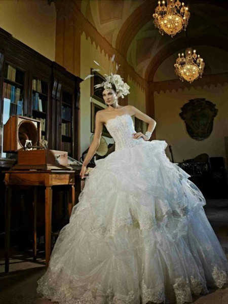 意大利婚纱品牌Amelia Sposa以华丽的唯美风为主调,不仅利用细腻的蕾丝作为重要元素,还会利用蓬松精致的纱绸来设计..